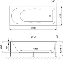 BellSan Акриловая ванна Эрика 170x75 с гидромассажем