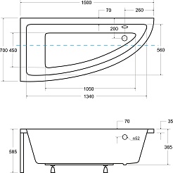 Besco Акриловая ванна Inspiro 150x70 P со шторкой