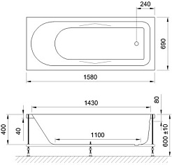 BellSan Акриловая ванна Тора 160x70 с гидромассажем