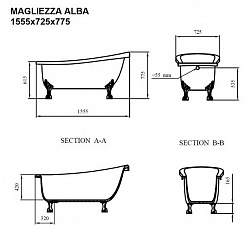 Magliezza Акриловая ванна на лапах Alba (155,5x72,5) ножки хром