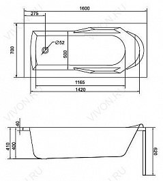 Cersanit Акриловая ванна Mito Green 170x70 ультра белая