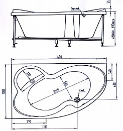Aquatek Акриловая ванна Фиджи 170x110 L с каркасом