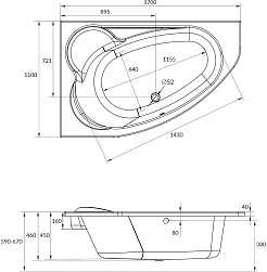 River Акриловая ванна 150/150/55