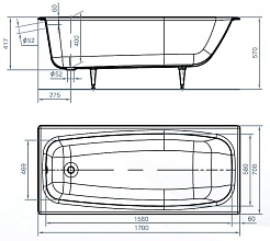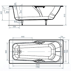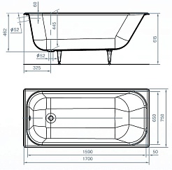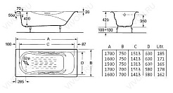 Универсал Ванна чугунная Сибирячка У 170x75 с отверстиями под ручки