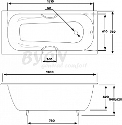 Byon Чугунная ванна BYON 15 170 см с ручками