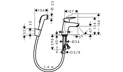 Grohe Смеситель для раковины BauEdge 23757000 с гигиеническим душем