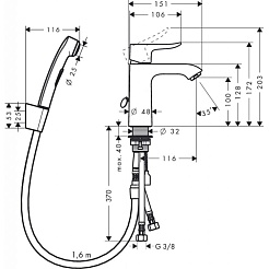 Hansgrohe Смеситель Metris 31285000 для раковины с гигиеническим душем