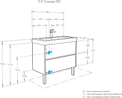 Runo Тумба с раковиной Вудлайн 85 Bella скандинавский дуб/белая