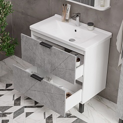 Grossman Тумба с раковиной Талис 80 подвесная бетон пайн/белая
