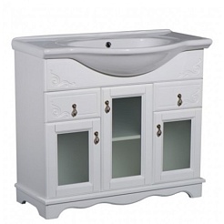 Bas Тумба под раковину Варна 85 белый, вставки стекло, 2 ящика