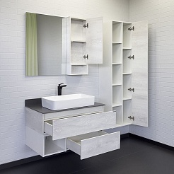 Comforty Мебель для ванной Осло 80 с зеркальным шкафом подвесная бетон светлый