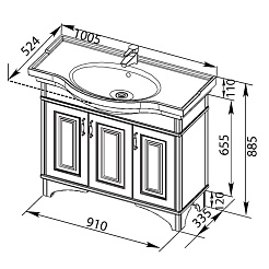 Aquanet Комплект мебели Селена 105 (3 ящика, 2 дверцы), белая/патина серебро