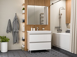 Misty Мебель для ванной Купер 90 R 4 ящика с зеркалом Гамма белая