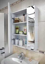СанТа Мебель для ванной под стиральную машину Марс 90 L с зеркальным шкафом Стандарт 90 белая/светлое дерево
