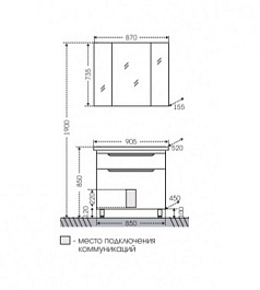СанТа Мебель для ванной под стиральную машину Марс 90 L 2 ящика с зеркальным шкафом Стандарт 90 белая