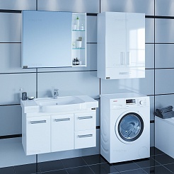 СанТа Мебель для ванной под стиральную машину Марс 90 L с зеркальным шкафом Стандарт 90 белая