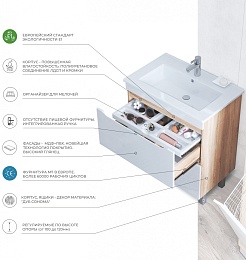 Grossman Мебель для ванной Флай 80 GR-3020 дуб сонома/белая