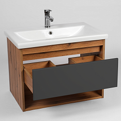 Viant Мебель для ванной Бостон 80 1 ящик подвесная графит/дуб вотан