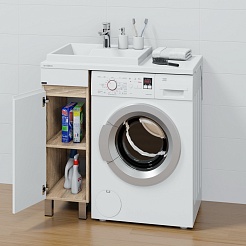СанТа Мебель для ванной под стиральную машину Марс 90 L 2 ящика белая/светлое дерево