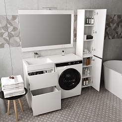 СанТа Мебель для ванной под стиральную машину Марс 120 L 1 ящик подвесная белая