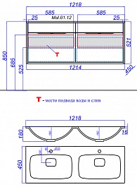 Водолей Тумба с раковиной Айрис 120 L под стиральную машину