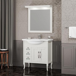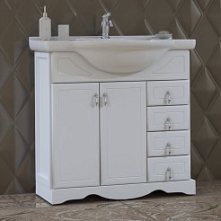 ASB-Woodline Тумба с раковиной Римини Nuovo 80 белый (патина серебро), массив ясеня