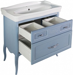 ASB-Woodline Тумба с раковиной Салерно 105 белый (патина серебро), массив ясеня