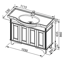 Misty Тумба с раковиной Milano 100 белая патина/декор