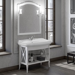 Sanflor Тумба с раковиной Адель 100 белая, патина серебро