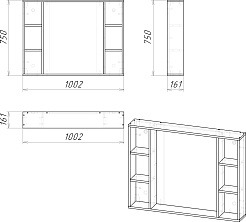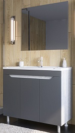 Stella Polare Мебель для ванной Абигель 100 3 двери с зеркальным шкафом темно-серая/цемент