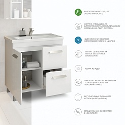 Акватон Мебель для ванной Бекка Pro 70 белая/дуб сомерсет