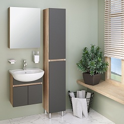 Runo Мебель для ванной Лада 50 подвесная графит/дуб серый