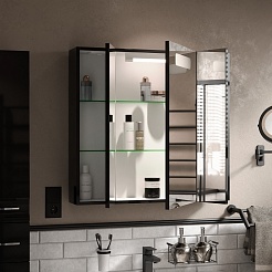 Водолей Мебель для ванной Арабеска 80 с зеркальным шкафом Квадро черная