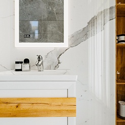 Бриклаер Мебель для ванной Кристалл 80 с нишей с зеркалом с полками и шкафчиком белая/дуб бунратти