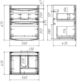 Бриклаер Тумба с раковиной Вега 60 2 ящика белая