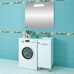 Comforty Тумба с раковиной Лозанна 100 под стиральную машину белая глянцевая