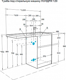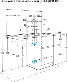 Dreja Тумба с раковиной Vega 120 L под стиральную машину белая
