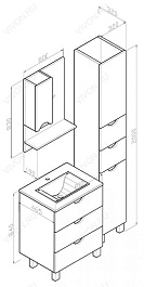 Водолей Тумба с раковиной Лира 75 с ящиками венге