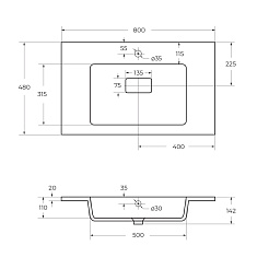 Cezares Тумба с раковиной Duet-N 80 подвесная CZR-8095-80 ясень белый софт