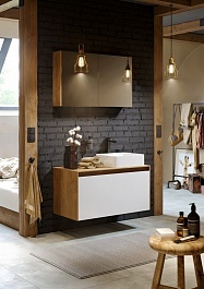 Sancos Зеркало-шкаф Mirror 100 с подсветкой MI100EG дуб галифакс натуральный