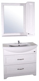 ASB-Woodline Зеркало-шкаф Берта 85, белый/патина серебро, массив ясеня