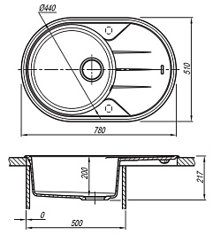 Florentina Мойка гранитная Родос 760 с крылом антрацит