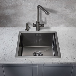 Milacio Мойка кухонная Denia 68 Steel со смесителем вороненая сталь