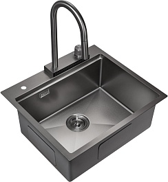 Milacio Мойка кухонная Denia 57 Steel со смесителем вороненая сталь