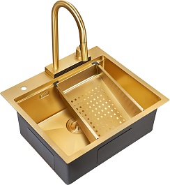 Milacio Мойка кухонная Denia 57 Steel со смесителем золото