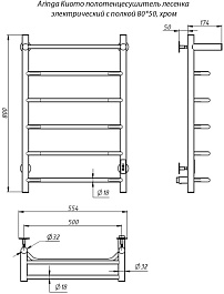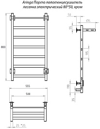 Aringa Полотенцесушитель электрический Порто 80x50 AR03010BL с полкой черный