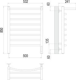 Тера Полотенцесушитель Богема с полкой 500х1000 ПСВ-30-09