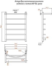 Aringa Полотенцесушитель водяной Бро 80x50 AR03030CH с полкой хром