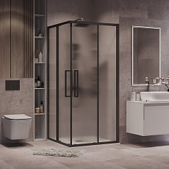Grossman Душевой уголок Galaxy 80x80x195 профиль черный матовый стекло шиншилла