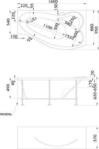 100Acryl Акриловая ванна Acrylia 160x95 R